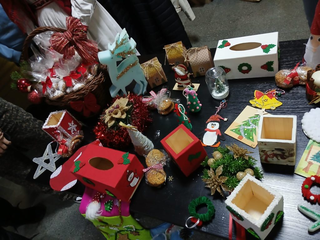 Proiectul a debutat la începutul lunii decembrie, cu desfășurarea unor ateliere de lucru, în care elevii cls. a VII-a C, a VIII-a A și a VIII-a C au confecționat obiecte handmade, decorative de Crăciun: coronițe, ciorapi și huse din fetru pentru sticle de vin, cutiuțe de bijuterii, ornamente și căsuțe din lemn, globuri și accesorii pentru brad, dar și dulciuri specifice sărbătorii.